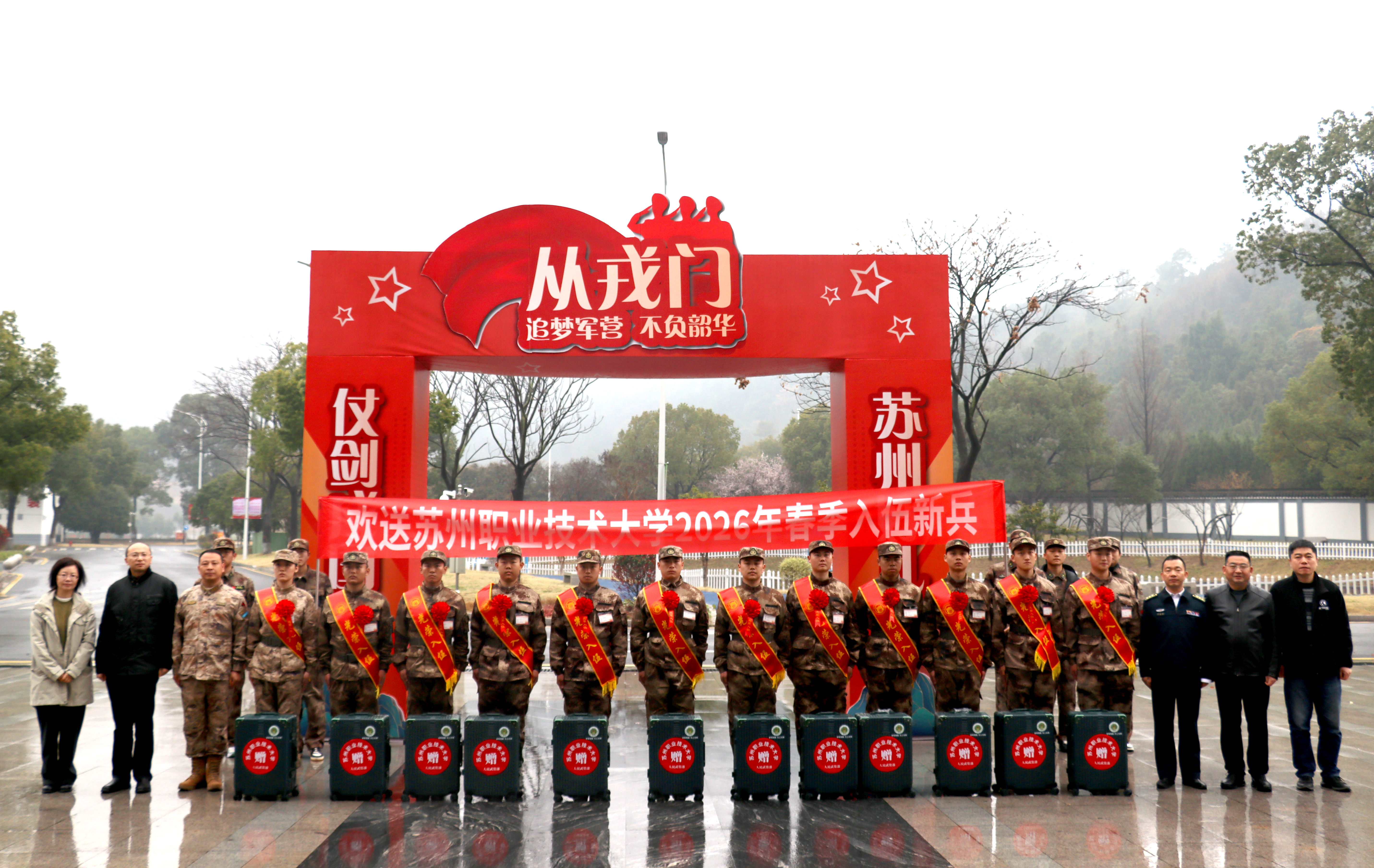 校领导带队赴吴中区役前集训队慰问欢送我校2026年春季入伍新兵