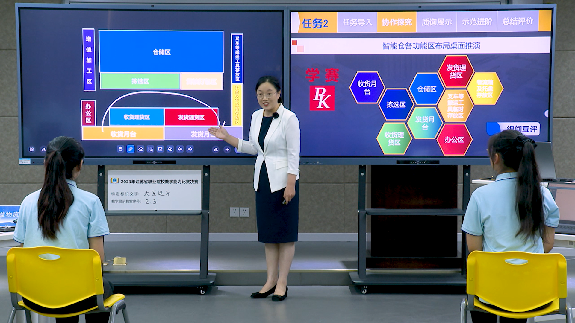 2023年,当专家断言“蝉联一等奖几无可能”后,何老师依旧毅然决然执炬再征,将进军国赛定为目标。如果说第一年是在对标典范基础上取得的成功,那么第二年则需要破茧重生。顶着巨大压力,何老师带领团队开启了物流龙头企业一线的走访调研之旅。上海京东亚一仓、江苏海晨物流、苏州新宁物流、中通物流、莱克电气等企业,都留下了她们探寻的足迹。为了深入探析物流分拨中心的核心业务,她们星夜奔赴常熟中通中转场,沉浸式学习分拨业务流程,与管理人员深入交流,反复咨询,直到凌晨1点多钟才踏上归途。作品材料打磨,字斟句酌;教学视频拍摄,精益求精。记得拍摄结束时,已是凌晨4点,正是这份敢破樊笼、精益求精、一丝不苟的精神,让何老师团队在2023年再次将江苏省教学能力比赛一等奖收入囊中,续写了辉煌。