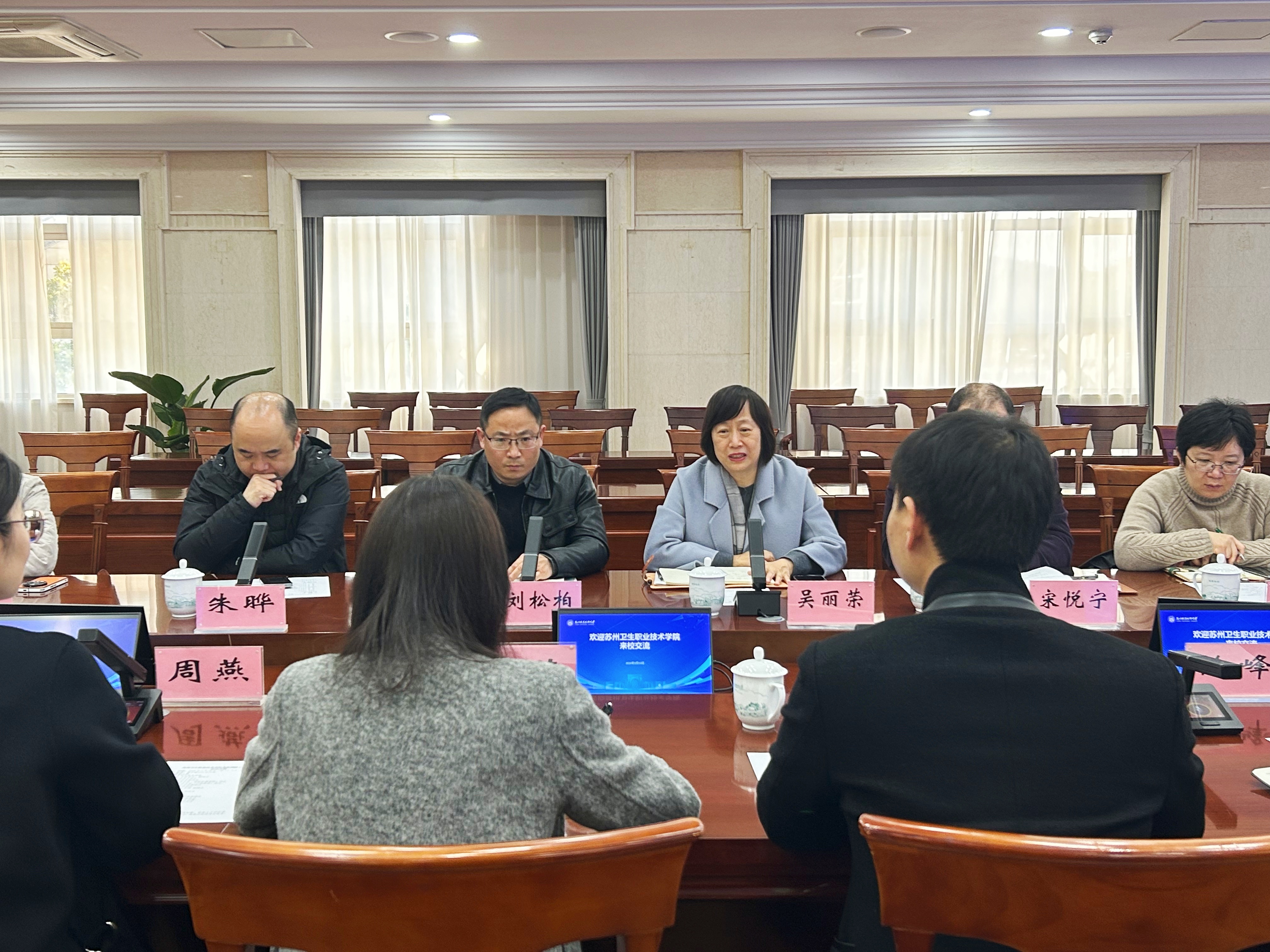 吴丽荣对我校的热情接待表示感谢,并介绍了苏州卫生职业技术学院在科研管理与建设方面的基本情况。她表示,苏州职业技术大学近年来在科研机制创新和服务地方发展方面取得了显著成效,相关经验和做法具有重要借鉴意义。