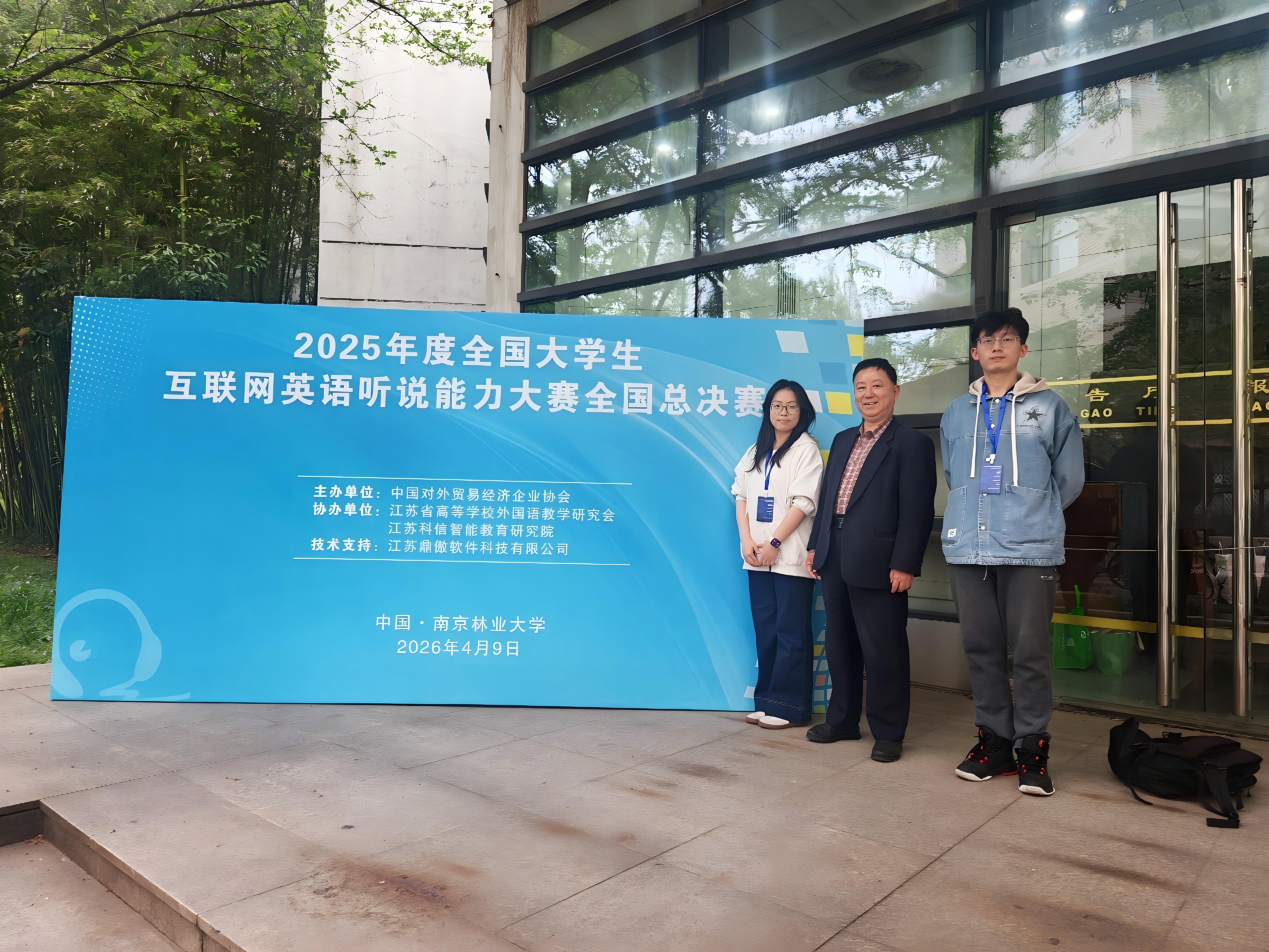 4月9日,2025年度全国大学生互联网英语听说能力大赛全国总决赛在南京林业大学举行。我校外国语学院学生李嘉鑫(指导教师:卞浩宇)和王煜(指导教师:钱鑫)分别荣获全国总决赛专科组一等奖和二等奖。