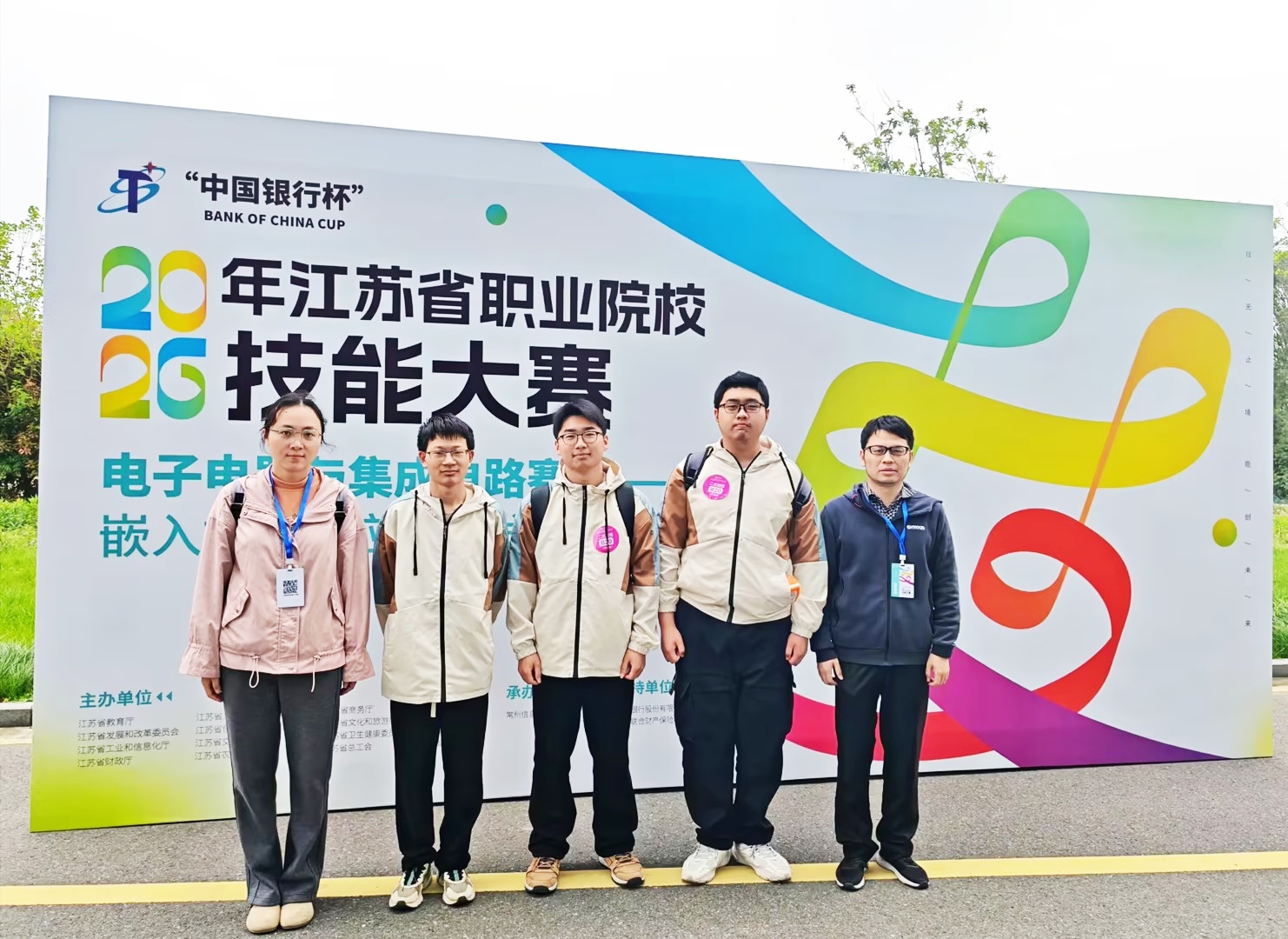 4月16日至17日,2026年江苏省职业院校技能大赛高职电子电器与集成电路赛道“嵌入式系统应用开发”赛项在常州信息职业技术学院举行。我校电子信息工程学院师生团队表现卓越:朱翰钦、冯翰文、王登欢三位同学在罗伟、许玥两位老师指导下荣获学生组二等奖;罗伟老师凭借扎实的技术功底与稳定的临场发挥,斩获教师组一等奖第一名。此次佳绩充分展现了我校在嵌入式技术应用领域的深厚积淀与人才培养成效。