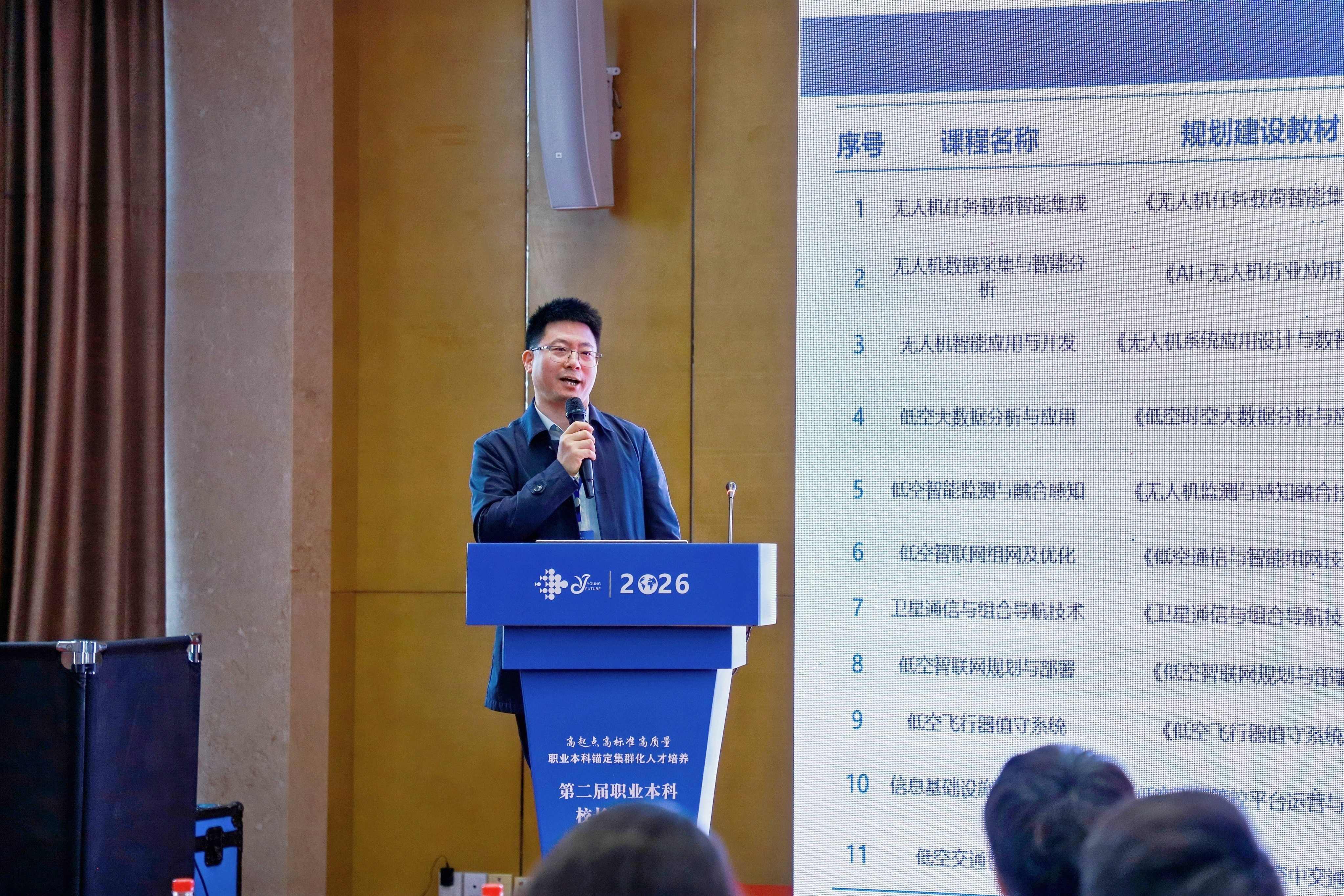 分论坛上,我校数字低空学院院长邓建平作题为《筑底强基,人才先行:低空经济领域高技能人才集群培养的探索与实践》的专题报告,系统介绍了学校面向低空经济领域开展高技能人才集群培养的实践探索。报告围绕低空经济产业发展需求,重点分享了学校聚焦“低空基建与信息服务”核心领域,构建“企业+高校+行业协会”协同推进机制,推进专业、课程、教材、实训基地、教师能力等关键要素联动改革的思路与举措。作为“低空经济领域高技能人才集群培养计划培育项目”的牵头单位之一,我校坚持把服务国家战略、对接区域产业、培养高端技能人才贯穿项目建设全过程,积极探索低空经济领域高技能人才集群培养的“苏职大路径”。